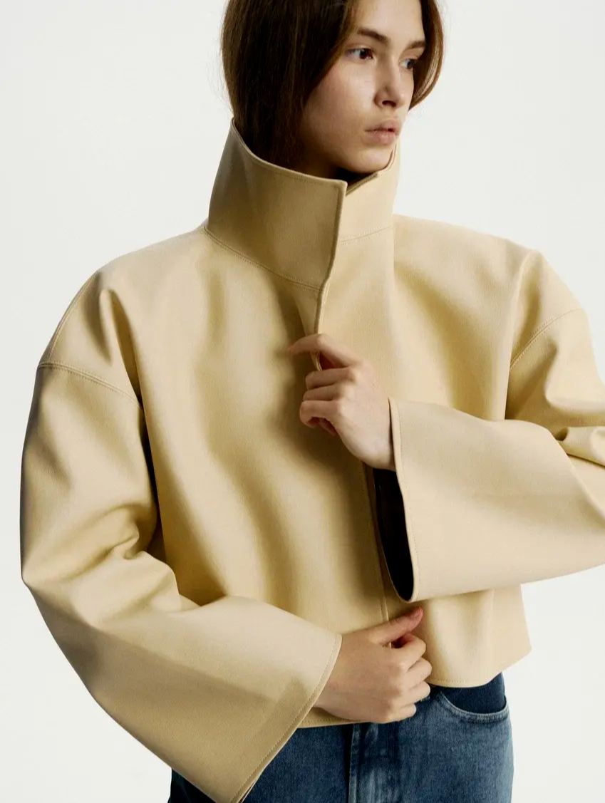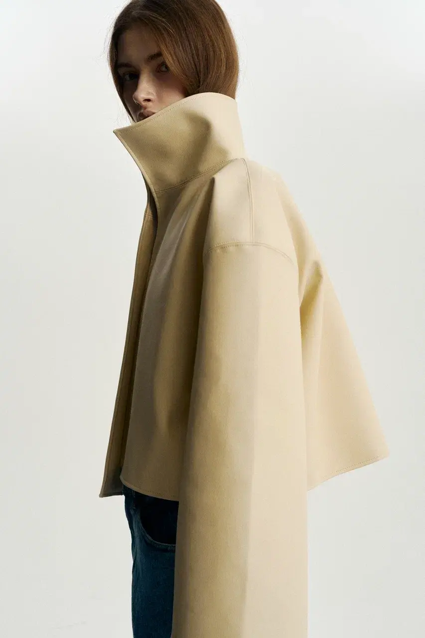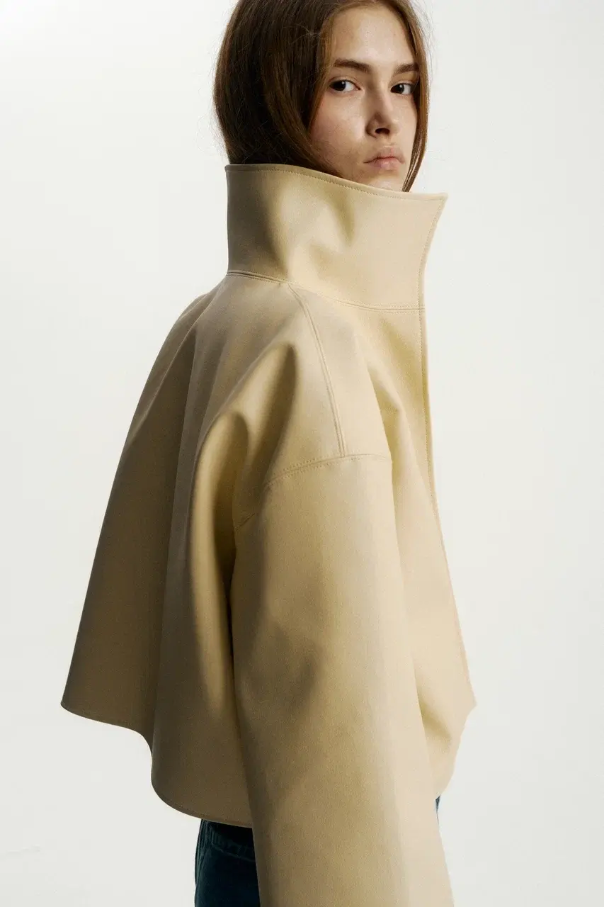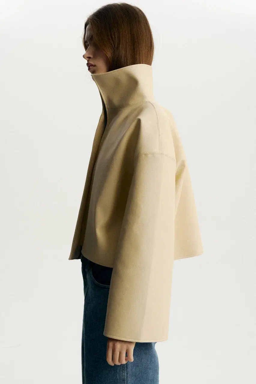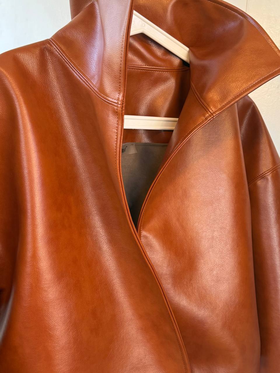 Куртка-накидка выполнена из износостойкой экокожи. Укороченная форма с необычным кроем плеча добавит необычности вашему образу, а высокий ворот служит не только акцентной деталью бомбера, но и защищает от погодных условий, тк экокожа- непродуваемый материал.